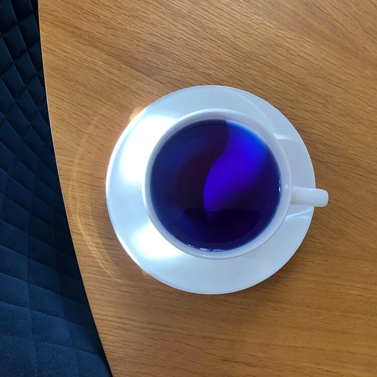 Blue tea is naturally low in tannins. Tannins are compounds that can contribute to staining teeth by adhering to the enamel. They’re also responsible for the accumulated brown stain seen in tea cups – a common sight in office kitchens around the world. As butterfly pea tea is low in tannins, it is less likely to cause staining than other teas that have higher levels of tannins, such as black tea.